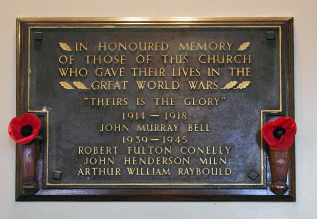 After the second world war in 1946, a memorial was placed on the wall of the church commemorating the members of the congregation who died in the two World Wars, 4 names where on it: